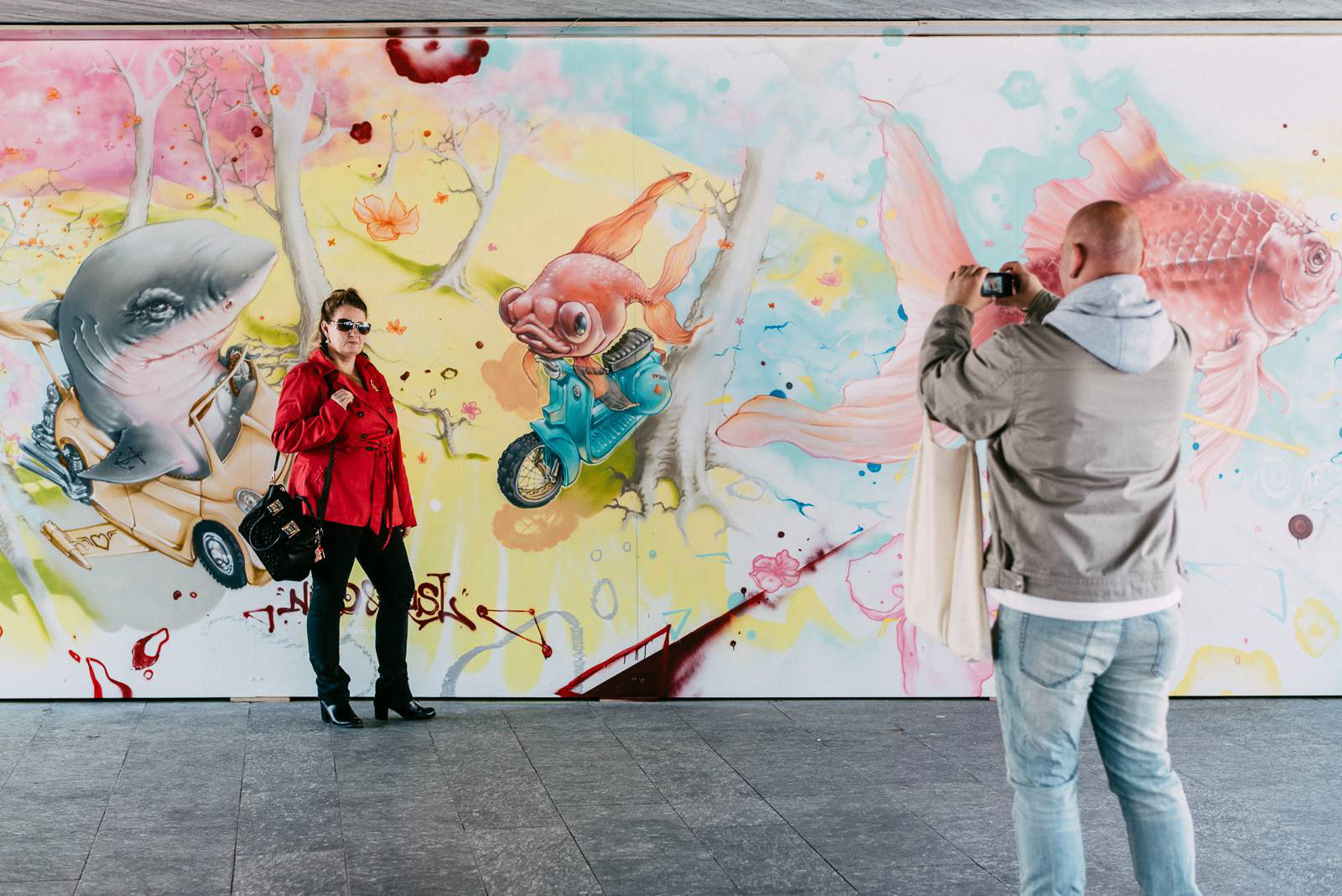 Herzstück des impulsiven und bunten Events waren die Live-Graffitis an der Marktstätte Unterführung durch sieben renommierter Künstler aus dem In- und Ausland. Vier Tage lang konnten die Besucher den Gestaltungsprozess vor Ort beobachten und bei Interesse mit den Künstlern in Dialog treten.
